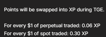 - 무기한(perpetual) 선물 거래: $1당 0.06 XP