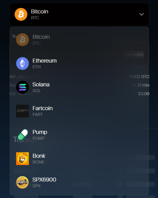 유닛자산인 BTC ETH SOL FARTCOIN PUMP BONK SPX6900을 거래해야 합니다