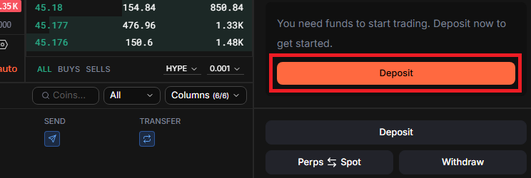 우측 중간 조금 아래 위치한 Deposit 버튼을 누르면