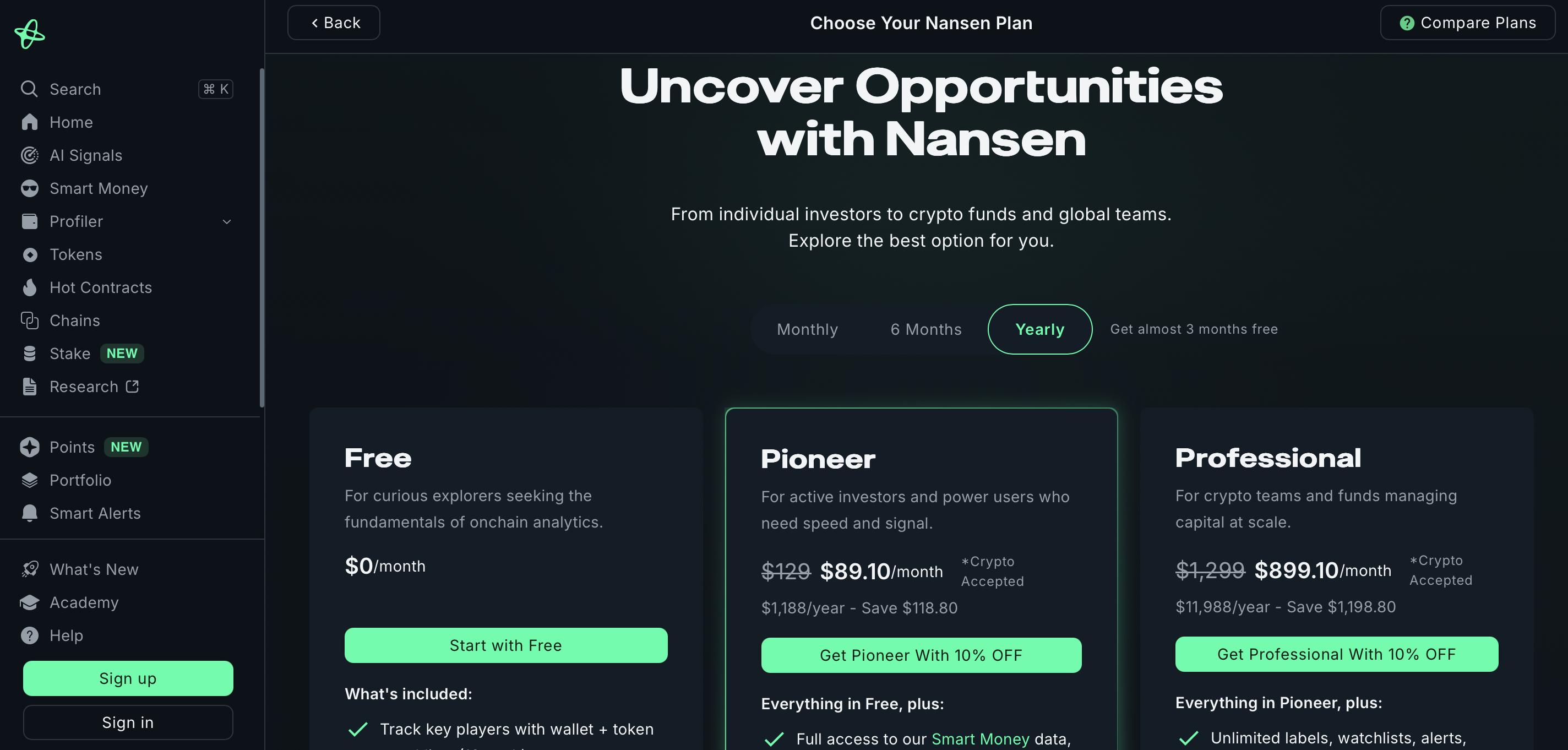 - Nansen 팀 자체의 분석 콘텐츠 및 외부 전문가 리포트를 통해 전문 리서치 기반의 의사결정이 가능합니다.