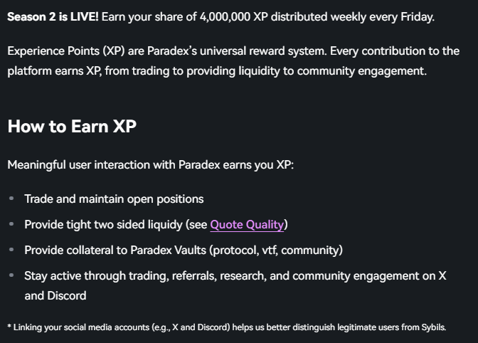 Paradex는 StarkNet 기반 개인투자자들에게 무료 수수료를 제공하는 영구선물 거래소로, XP Warzone 프로그램(포인트) 제도를 도입해 진행하고 있습니다.