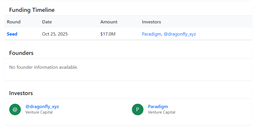 2024년 10월 총 $17M(대략 한화 244억 규모)의 시드라운드 단일 투자를 받았으며, 1티어 VC인 Paradigm이 인큐베이팅하고