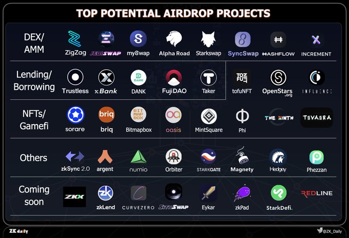 위 사진은 영지식 기반 잠재적으로 에어드랍 가능성이 있는 프로젝트들입니다.