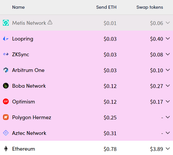 스왑 수수료까지 살펴보면 zkSync가 제일 저렴한 것으로 확인되네요.
