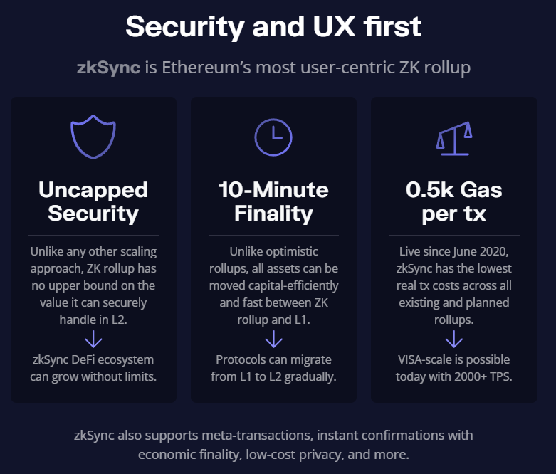 홈페이지를 보면 zkSync가 내세우는 기술이 3가지가 있는데 살펴보자면